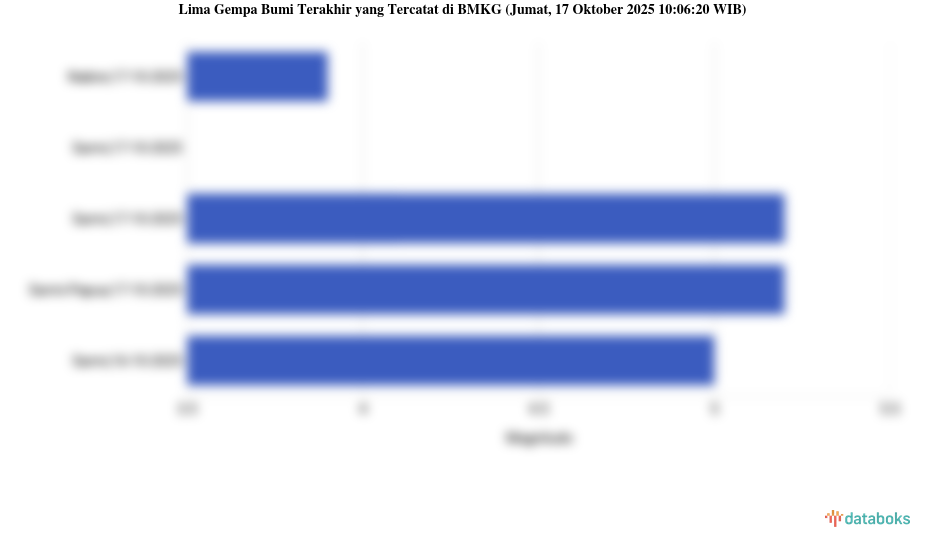 Gempa dengan kekuatan magnitude (M) 3,9 di Nabire."Pusat gempa berada di darat 6 km timur laut Nabire dan gempa ini dirasakan untuk diteruskan pada masyarakat." tulis BMKG (Badan Meteorologi, Klimatologi, dan Geofisika) melalui website resminya, Jumat, 17 Oktober 2025.