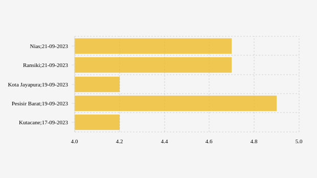 Gempa dengan kekuatan magnitude (M) 4,7 di Nias. Pusat gempat berada di laut."Pusat gempa berada di laut 71 km tenggara Nias dan gempa ini dirasakan untuk diteruskan pada masyarakat." tulis BMKG (Badan Meteorologi, Klimatologi, dan Geofisika) melalui website resminya, 21 September 2023.