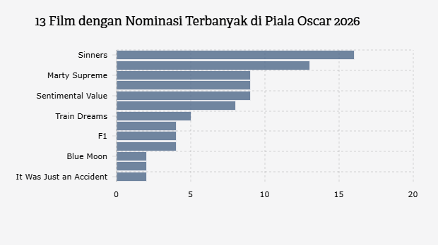 Lengkapnya, berikut daftar 13 film dengan nominasi terbanyak di Piala Oscar 2026: