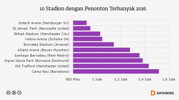 Sepanjang musim 2015/16, Stadion Camp Nou kedatangan 1.514.756 penonton. Rata-rata stadion kandang Barcelona itu kedatangan 79.724 penonton setiap pertandingan. Pada musim lalu, Westfalenstadion mampu menampung 99.354 penonton. Stadion terpadat kedua adalah Old Trafford. Stadion dengan julukan Teater Impian milik Manchester United mampu mendatangkan 1.430.434 penonton dalam satu musim.