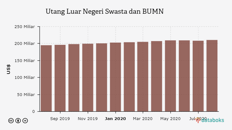Utang luar negeri (ULN) swasta dan Badan Usaha Milik Negara (BUMN) Indonesia sebesar US$ 210,43 miliar pada Agustus 2020. Pertumbuhan ULN swasta dan BUMN pada Agustus 2020 mencapai 7,9% (yoy).