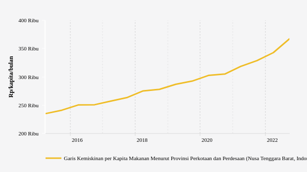 Garis kemiskinan per kapita makanan di provinsi Nusa Tenggara Barat sebesar Rp.367,54 ribu per kapita per bulan pada 2022. Angka ini naik Rp.24.746 dibandingkan data semester sebelumnya yang tercatat Rp.342,79 ribu per kapita per bulan.