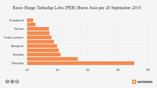Harga-harga saham di bursa Jakarta termahal kedua di Asia setelah bursa Shenzen, Cina. Hal ini terlihat dari rasio harga saham terhadap laba emiten (PER) Bursa Efek Indonesia pada 28 September 2016 telah mencapai 26,73 kali menurut data Bloomberg. Artinya harga saham di bursa Jakarta sudah 26,73 kali dari laba emiten, hanya lebih rendah dari harga saham bursa Shenzen, yaitu 45,42 kali.