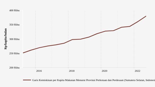 Garis kemiskinan di Sumatera Selatan per September ini naik lebih tinggi dibanding periode sebelumnya. Data historis provinsi, pernah mencatatkan pertumbuhan di level terendah dua tahun lalu pada September 2020 yakni 0,52 persen. Tahun ini, garis kemiskinan di Sumatera Selatan tumbuh 5,35 persen.