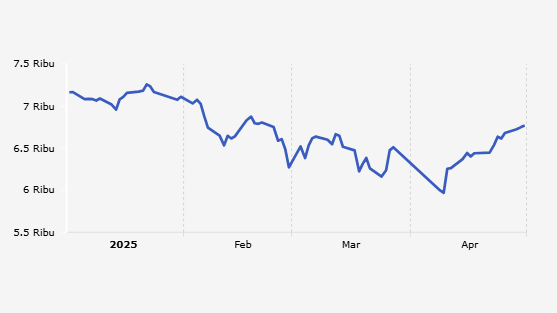 Adapun IHSG terakhir kali mencapai level 6.800 sekitar dua bulan lalu, tepatnya pada 21 Februari 2025.