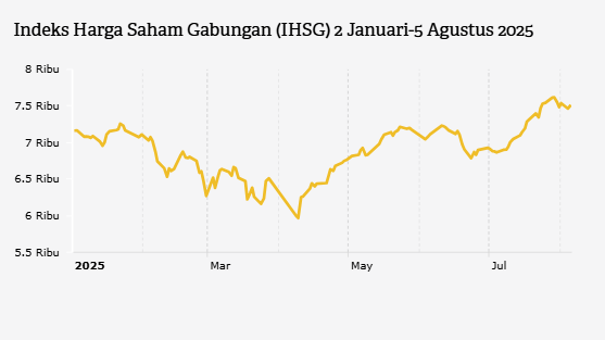 Indeks Harga Saham Gabungan (IHSG) ditutup menguat 0,68% ke level 7.515,19 pada penutupan perdagangan Selasa (5/8/2025).