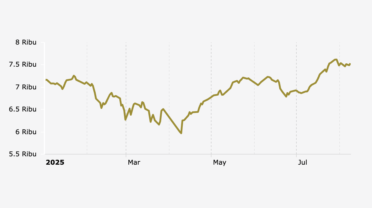Indeks Harga Saham Gabungan (IHSG) naik 0,58% menjadi 7.533,38 pada penutupan perdagangan Jumat (8/8/2025).