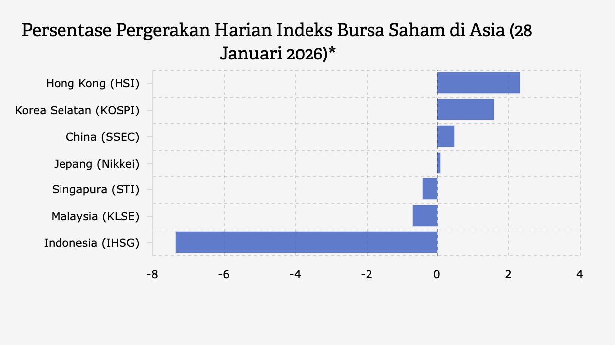 Indeks Harga Saham Gabungan (IHSG) jatuh 8% ke level 8.261 pada Rabu siang (28/1/2026).