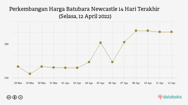 Harga Batu Bara Newcastle Turun ke Level US$ 290,65 per Ton (Selasa, 12 April 2022)
