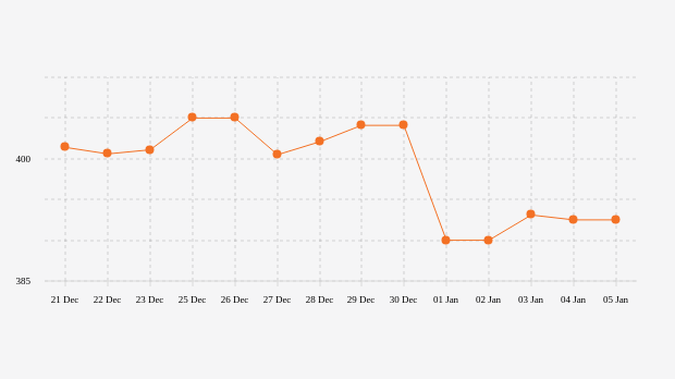 Untuk periode Januari 2023, harga batu bara newcastle terus bergerak naik, bergerak 0,64% dibandingkan kondisi awal tahun yang berada di level US$ 390 per ton