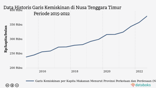 Garis kemiskinan per kapita makanan di provinsi Nusa Tenggara Timur sebesar Rp.380,566 per kapita per bulan pada 2022. Angka ini naik Rp.22.342 dibandingkan data semester sebelumnya yang tercatat Rp.358,224 per kapita per bulan.