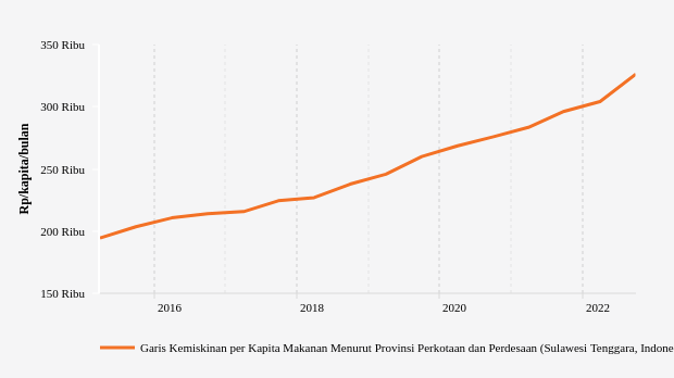 Garis kemiskinan per kapita makanan di provinsi Sulawesi Tenggara sebesar Rp.326,26 ribu per kapita per bulan pada 2022. Angka ini naik Rp.22.138 dibandingkan data semester sebelumnya yang tercatat Rp.304,13 ribu per kapita per bulan.
