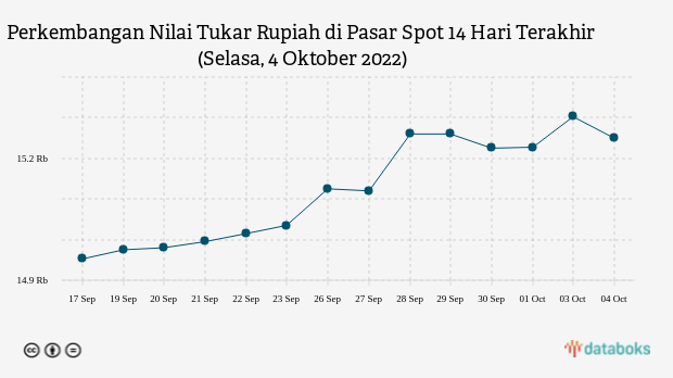 15,287 Ribu per Dolar AS (Selasa, 04 Oktober 2022)) Nilai tukar rupiah di pasar spot sempat berada di titik terendah 14