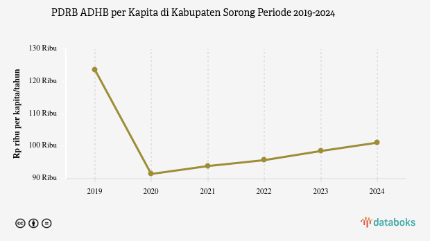 PDRB ADHB per kapita di Kabupaten Sorong tercatat Rp.101,11 juta/kapita/tahun data per 2024. Untuk empat tahun terakhir, PDRB ADHB per kapita terus naik. Dibandingkan dengan lima tahun sebelumnya, rata-rata pertumbuhan tahunan (CAGR) wilayah ini tercatat lebih tinggi. Adapun pertumbuhan lima tahun terakhir, tercatat diangka 2,03%.