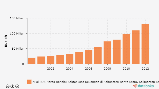 Nilai PDB Harga Berlaku Sektor Jasa Keuangan di Kabupaten Barito Utara, Kalimantan Tengah 2000 - 2012