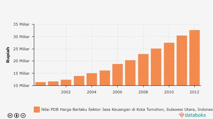Nilai PDB Harga Berlaku Sektor Jasa Keuangan di Kota Tomohon, Sulawesi Utara 2000 - 2012