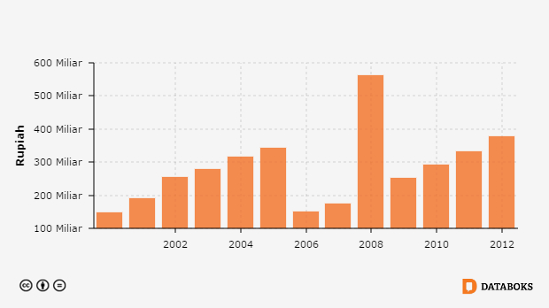 Nilai PDB Harga Berlaku Sektor Perdagangan, Hotel dan Restoran di Kabupaten Kerinci, Jambi 2000 - 2012