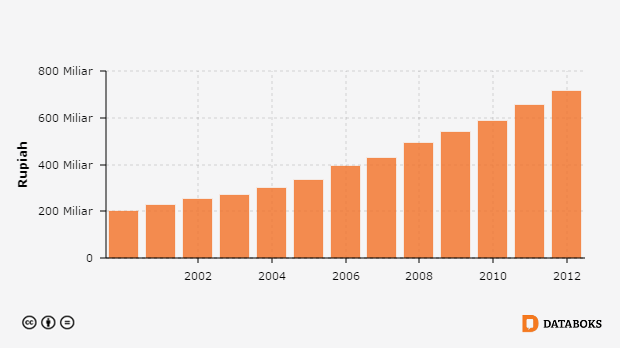 Nilai PDB Harga Berlaku Sektor Perdagangan, Hotel dan Restoran di Kabupaten Kulon Progo, DI Yogyakarta 2000 - 2012