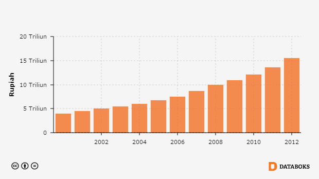Nilai PDB Harga Berlaku Sektor Perdagangan, Hotel dan Restoran di Kota Semarang, Jawa Tengah 2000 - 2012