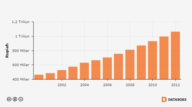 Nilai PDB Harga Konstan Sektor Perdagangan, Hotel dan Restoran di Kabupaten Lampung Tengah, Lampung 2000 - 2012