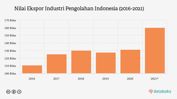Industri pengolahan mencatatkan nilai ekspor mencapai US$ 160,02 miliar sepanjang Januari hingga November 2021.
