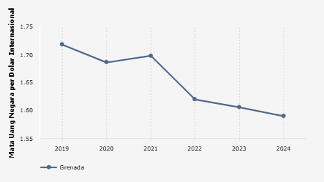 Dibandingkan dengan rata-rata PDB PPP Grenada dalam tiga tahun terakhir (sekitar 1.61), angka 2024 menunjukkan penurunan yang signifikan. Jika dibandingkan dengan rata-rata lima tahun terakhir (sekitar 1.67), penurunan ini semakin terasa. Hal ini mengindikasikan bahwa kondisi ekonomi Grenada saat ini kurang baik dibandingkan beberapa tahun sebelumnya.