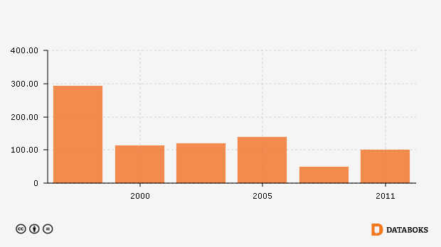 Jumlah Sekolah SD di Kabupaten Nabire, Papua 1996 - 2011