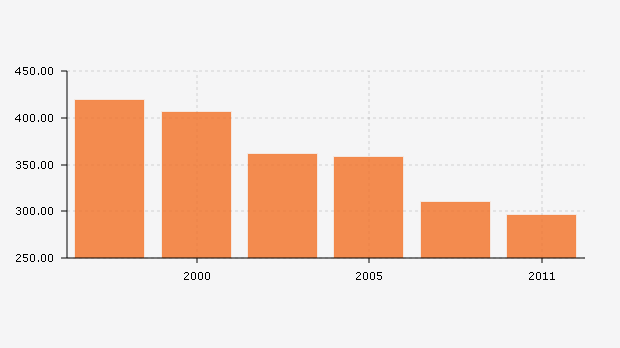 Jumlah Sekolah SD di Kota Malang, Jawa Timur 1996 - 2011