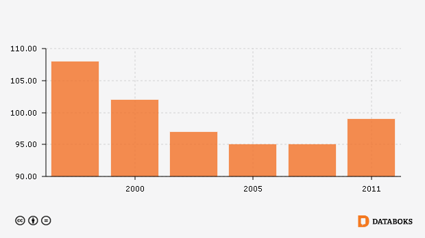 Jumlah Sekolah SD di Kota Tebing Tinggi, Sumatera Utara 1996 - 2011