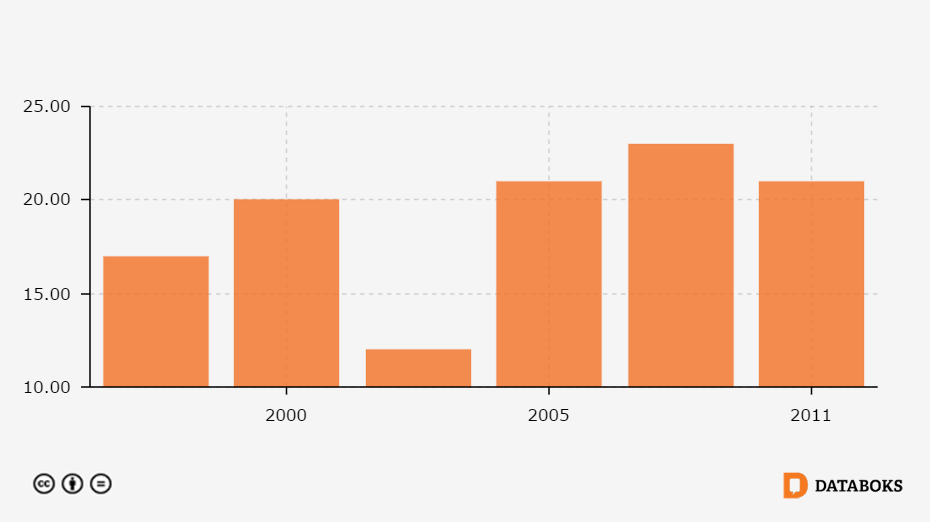 Jumlah Sekolah SMA di Kota Mojokerto, Jawa Timur 1996 - 2011