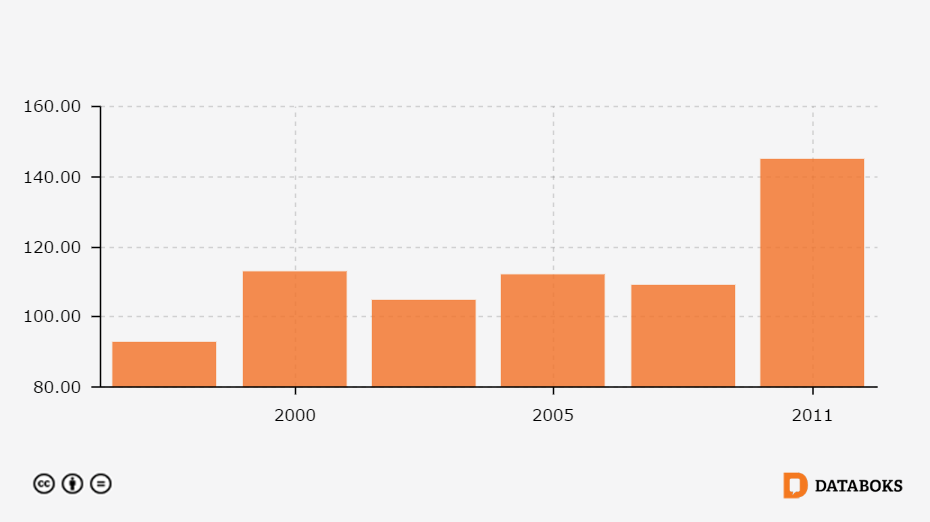 Jumlah Sekolah SMP di Kabupaten Sumedang, Jawa Barat 1996 - 2011