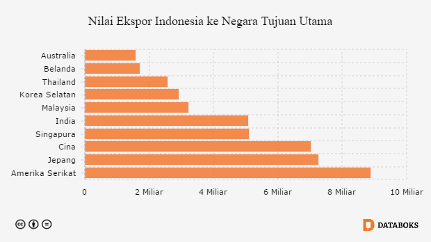 Amerika Serikat masih menjadi negara tujuan utama ekspor Indonesia pada 2016 meskipun mengalami penurunan. Menurut data Badan Pusat Statistik (BPS), nilai ekspor nonmigas Indonesia ke Negeri Paman Sam (Januari-Juli) 2016 tercatat US$ 8,87 miliar menyusut 1,5 persen dibanding periode yang sama tahun sebelumnya. Amerika menjadi pangsa pasar 12,39 persen ekspor nonmigas Indonesia