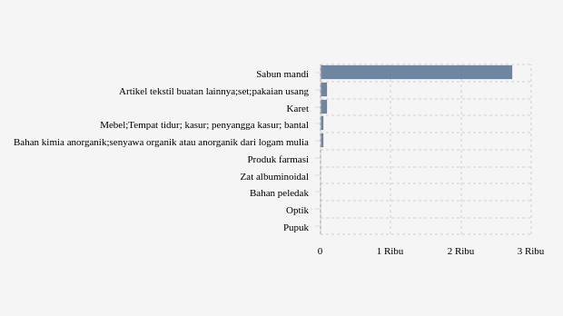 Sabun, agen aktif permukaan organik, persiapan cuci, persiapan pelumas, buatan. dalam klasifikasi Trademap masuk kategori produk HS dengan kode 34. Ekspor produk ini ke Kuba berada di urutan pertama. Dari negara ini, Indonesia mengekspor sebanyak US$ 2.728 ribu. Nilai ekspor Sabun, agen aktif permukaan organik, persiapan cuci, persiapan pelumas, buatan. ini lebih rendah dibandingkan periode sebelumnya yang mampu menembus US$ 12.273 ribu.