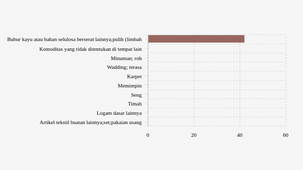 Di urutan pertama, Indonesia banyak mengimpor Bubur kayu atau bahan selulosa berserat lainnya. Dalam klasifikasi tradmap, Bubur kayu atau bahan selulosa berserat lainnya masuk kategori produk HS dengan kode 47. Produk ini merupakan jenis barang impor yang dikelompokkan bersama dengan dan kertas yang dipulihkan (limbah dan memo) atau..