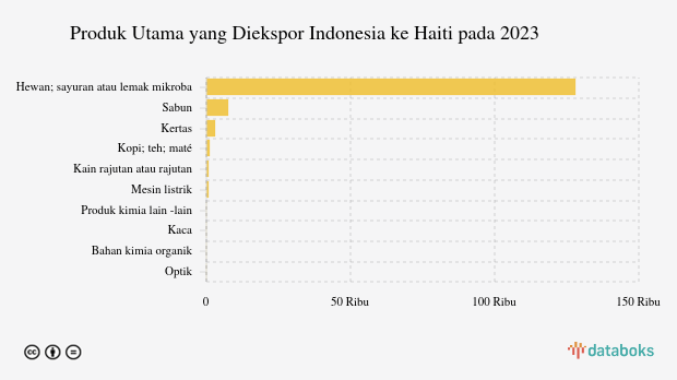 Berikut ini adalah daftar lima produk utama yang diekspor Indonesia ke Haiti. Urutan ini disusun mulai dari transaksi dengan nilai yang terbesar.