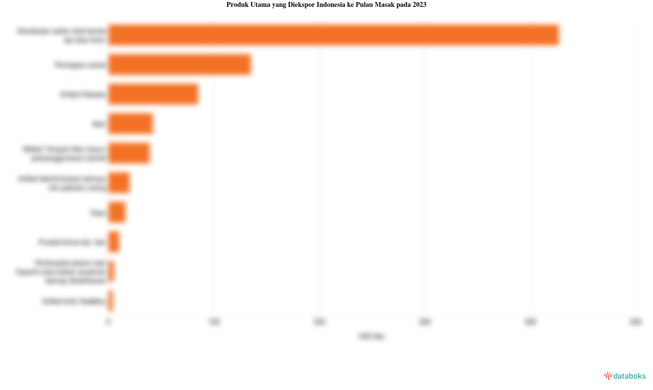 Berikut ini adalah daftar lima produk utama yang diekspor Indonesia ke Pulau Masak. Urutan ini disusun mulai dari transaksi dengan nilai yang terbesar.