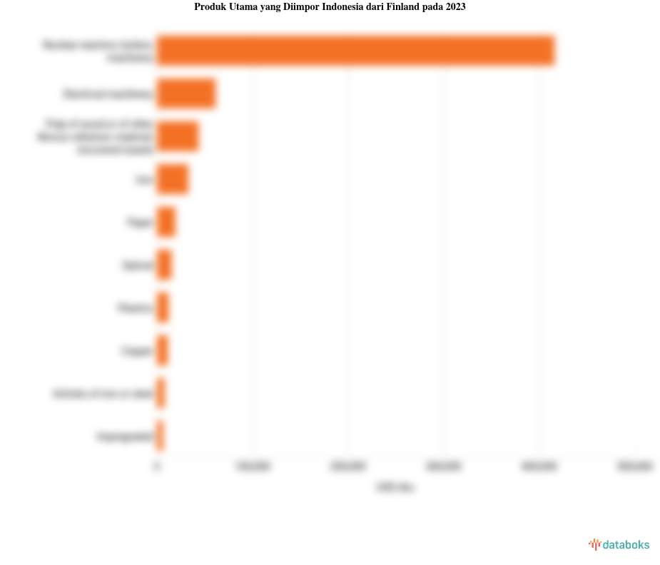 Di urutan kedua, impor Indonesia paling banyak adalah produk Electrical machinery and equipment and parts. Nilai impor dari Finland pada 2023 tercatat US$ 61,53 juta. Angka ini naik dibandingkan periode sebelumnya yang tercatat US$ 54.840 ribu.
