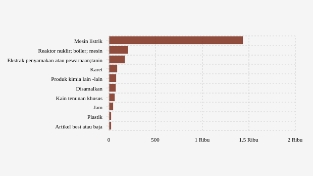Di urutan pertama, Indonesia banyak mengimpor Mesin dan peralatan listrik dan bagiannya. Dalam klasifikasi tradmap, Mesin dan peralatan listrik dan bagiannya masuk kategori produk HS dengan kode 85. Produk ini merupakan jenis barang impor yang dikelompokkan bersama dengan dan Perekam dan reproduksi suara, televisi..