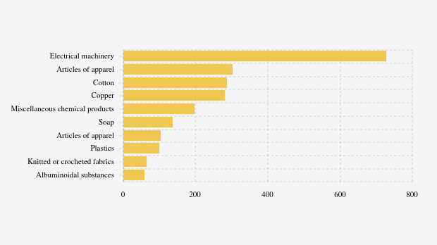 Dari total 97 produk (kode HS dua digit) yang diimpor dari Macao, 39 produk bernilai lebih dari satu miliar dolar. Selain itu menurut data Trademap, dari negara ini terdapat 30 produk utama Indonesia yang diimpor setiap tahun. Artinya, ada ketergantungan cukup besar untuk produk-produk impor tersebut. Lainnya, sebagian besar produk merupakan impor produk yang juga banyak diimpor dari negara lain.