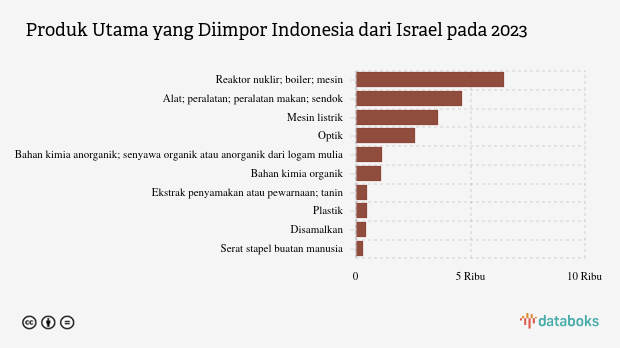 Rekam jejak perdagangan Indonesia dengan Israel, impor dalam 10 tahun terakhir jumlahnya telah cukup banyak berkurang. Terendah impor Indonesia adalah US$ 13,9 juta dan untuk impor tertinggi di angka US$ 109,94 juta.