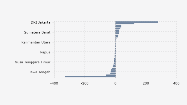 DKI Jakarta merupakan provinsi yang mencatat surplus neraca perdagangan antar wilayah terbesar senilai Rp 279,01 triliun pada 2020.