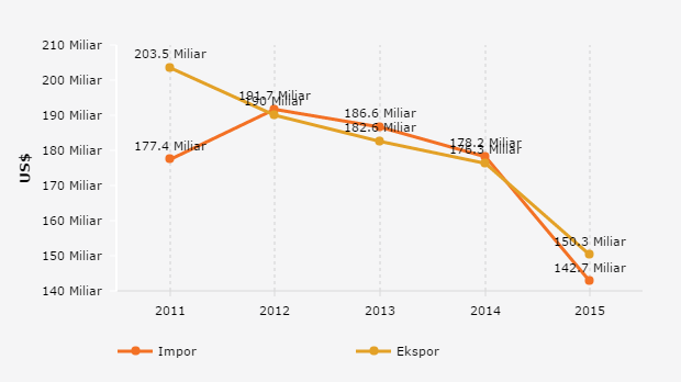 Nilai Ekspor-Impor Indonesia 2011-2015