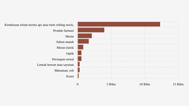Kendaraan selain stok kereta api atau trem, dan suku cadang dan aksesorinya dalam kategori produk dengan kode HS 87. Ekspor produk ini ke Mongolia berada di urutan pertama. Indonesia mengekspor US$ 12.275 ribu. Nilai ekspor Kendaraan selain stok kereta api atau trem, dan suku cadang dan aksesorinya ini naik dibandingkan periode sebelumnya yang tercatat US$ 4.044 ribu.