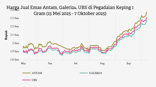 Harga Jual Emas Antam, Galeri24, UBS di Pegadaian Keping 1 Gram (15 Mei 2025 - 7 Oktober 2025)