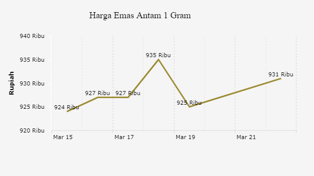 Harga Emas Antam Turun Jadi Rp 931.000/Gram (Senin, 22 Maret 2021)