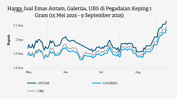 Harga Jual Emas Antam, Galeri24, UBS di Pegadaian Keping 1 Gram (15 Mei 2025 - 9 September 2025)