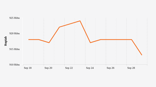 Harga emas Antam pada Rabu, 29 September 2021 turun Rp 5000 menjadi Rp 913.000 per gram, atau turun 0,5 persen dibandingkan hari sebelumnya. Sementara untuk harga jual kembali (buyback) sebesar Rp 798 ribu per gram.