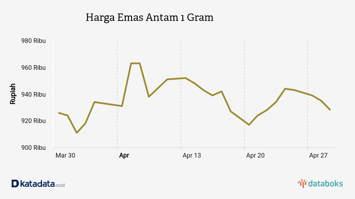 Harga Emas Antam Turun Jadi Rp 928.000/Gram (Rabu, 29/4)