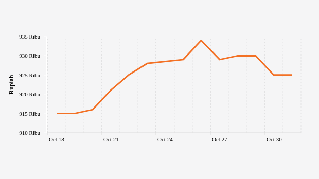 Harga emas Antam pada Minggu, 31 Oktober 2021 diperdagangkan tetap pada harga Rp 925.000 per gram, atau tidak berubah dibandingkan hari sebelumnya. Sementara untuk harga jual kembali (buyback) sebesar Rp 815 ribu per gram.
