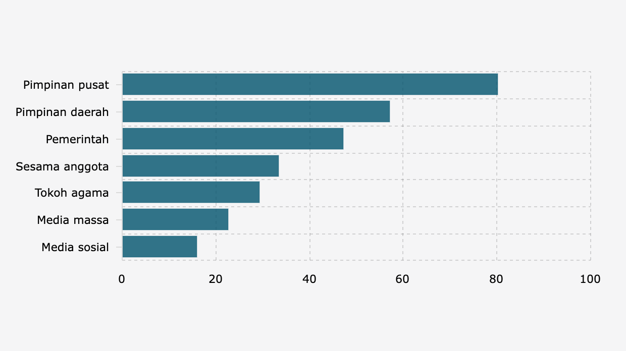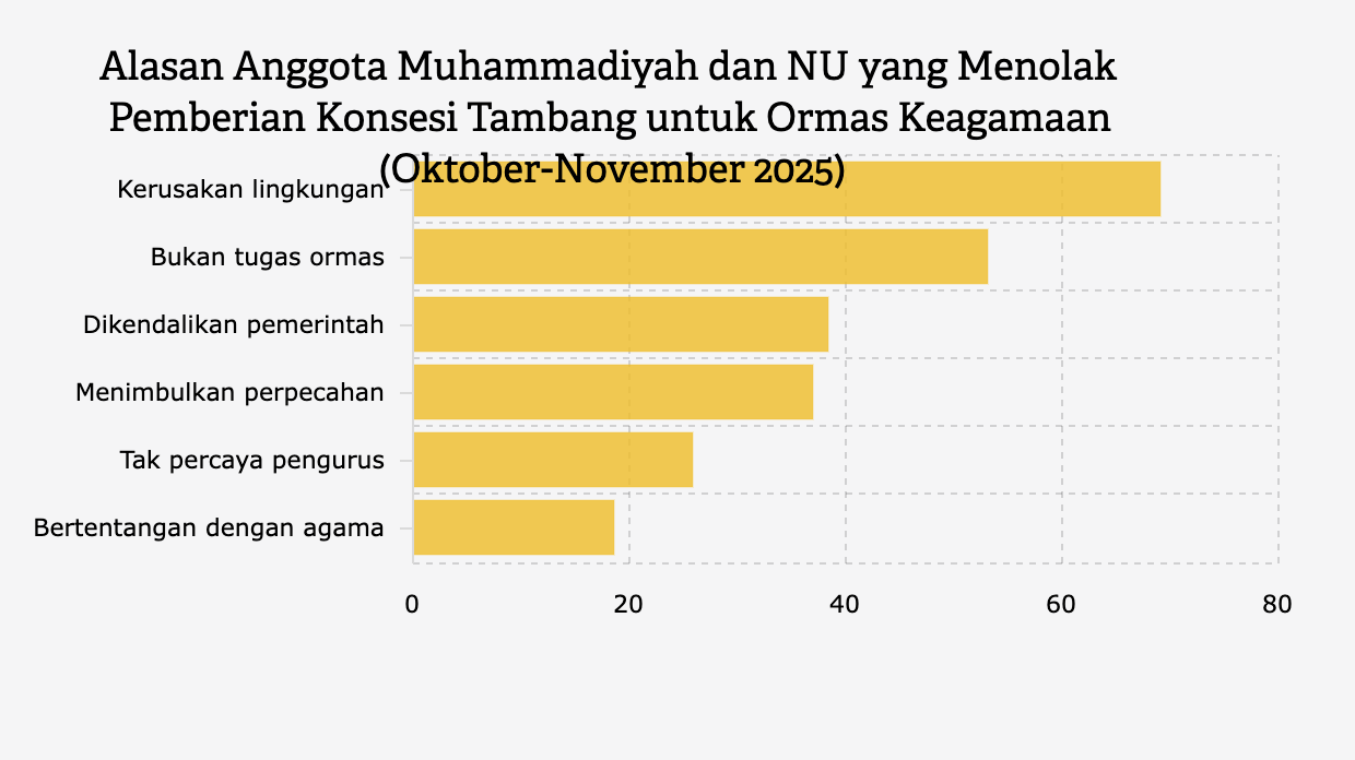 Menurut survei Katadata Insight Center (KIC), ada banyak anggota Muhammadiyah dan NU yang mendukung pemberian konsesi tambang untuk ormas keagamaan karena terpengaruh pimpinan pusat.